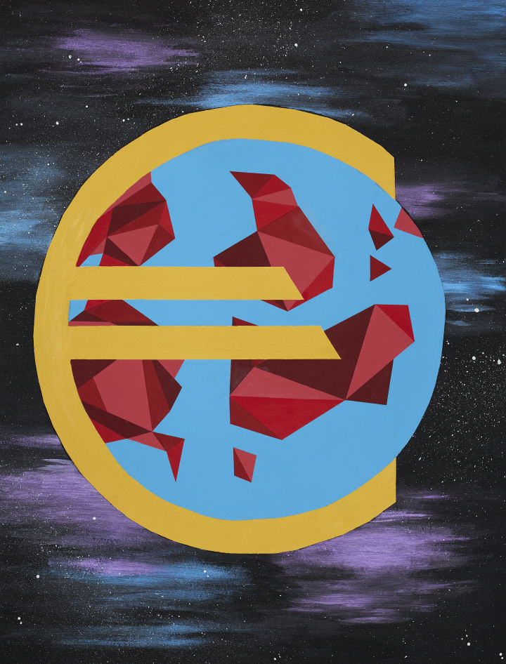 Nein! …Kapitalismus ist allgegenwertig! Unsere Länder bluten und das Geld umarmt die Welt! Das ist die Botschaft unserer Platte. „Dem Kapitalismus wohnt ein Laster inne: Die ungleiche Verteilung der Güter. Dem Sozialismus hingegen wohnt eine Tugend inne: Die gleichmäßige Verteilung des Elends“ (Winston Churchill). Durch den Kapitalismus entsteht eine Klassengesellschaft, die zur Ausgrenzung führt. Denn wer mehr hat ist angesehener in der Gesellschaft. Früher wurde diese Ausgrenzung über Religion, Hautfarbe und auch damals schon über Finanzen ausgelebt. Das Elend stellen wir mit der Farbe Rot (Blut) auf den Ländern dar, die verschiedenen Rotabstufungen sind ein Zeichen für die ungleiche Verteilung der Güter. Der Buchstabe „E“ steht mittig im Fokus, und ist als Eurozeichen verkörpert. Dass das Geldsymbol größer ist als die Welt, die Welt umarmt, umringt und beengt steht auch dafür, dass Geld für die meisten Menschen Priorität hat. Kontraststarke Farben bringen die Platte zum Leuchten und stehen für die Brisanz der Thematik.