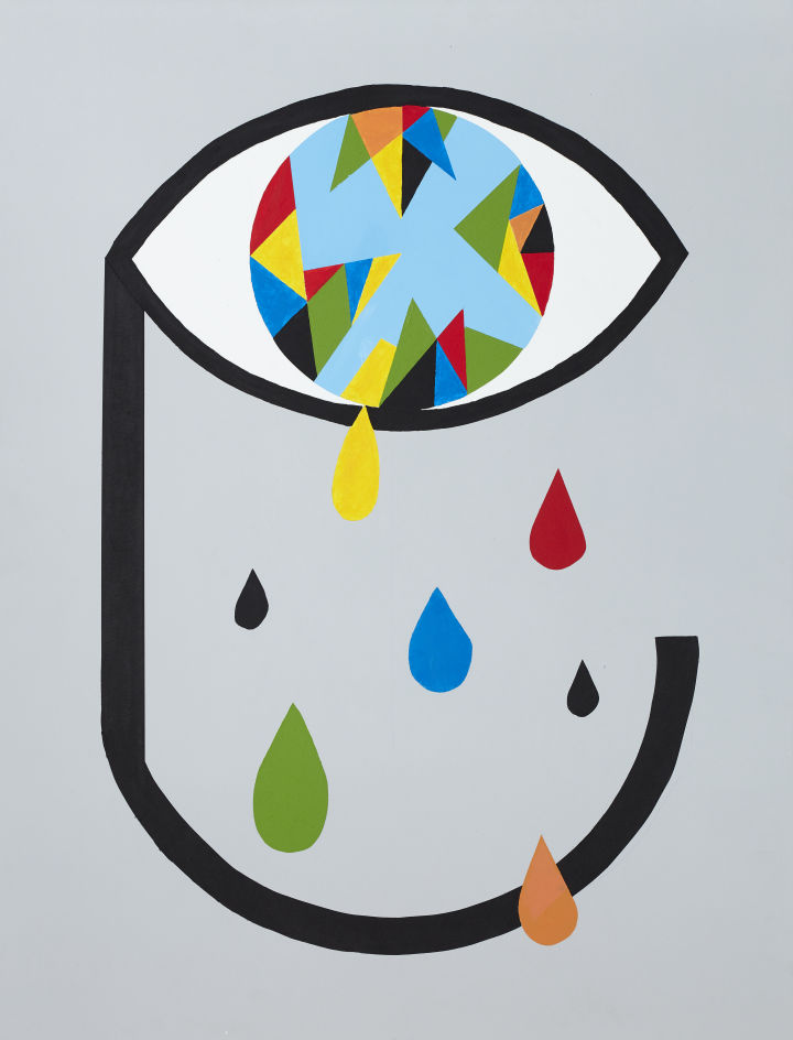 Diese prägt uns und führt dazu, dass wir zum Beispiel aus den verschiedensten Gründen weinen und Dinge individuell begründen… ob vor Freude, Euphorie oder Entsetzen und Traurigkeit. Die Weltkugel mit all ihren Farben und Seiten, die bunt und schön oder dunkel und „hässlich“ sind, spiegelt alle Emotionen in einem weinenden Auge wieder. Dessen Tränen unterscheiden sich zum einen in der Farblichkeit (Freude, Trauer,…) und zum anderen in der Größe (Grund und Wichtigkeit durch persönliche Erfahrung).