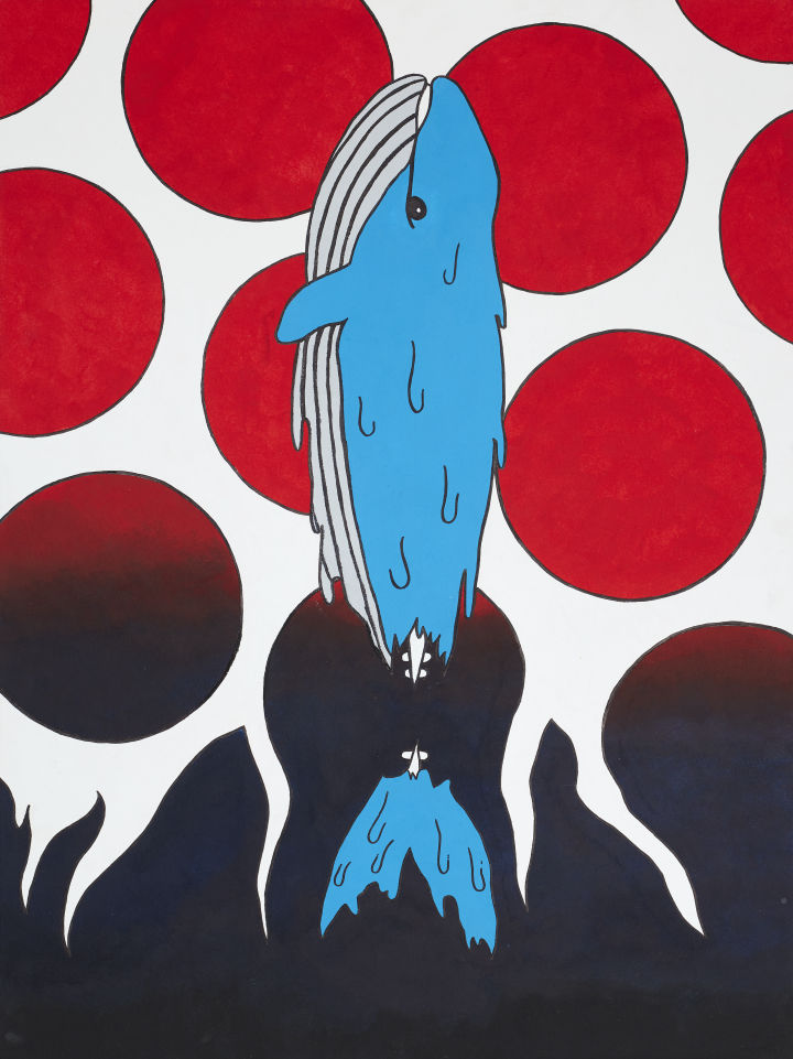 Die Wellen auf unserer Abbildung gehen immer wieder in verschiedene Richtungen und haben ungleiche Abstände und Höhen, um das Wilde und Ungebändigte des Ozeans widerzuspiegeln. Das blaue Meer verfärbt sich ins Grüne um die Vermischung mit der gelben Plastikflasche darzustellen, zu dem ist das Wasser so hoch angesetzt, um auf den steigenden Meeresspiegel hinzuweisen, der bis heute schon um 19 +/- 2cm gestiegen ist. Die endlose Flasche wird teilweise von den Wellen verdeckt, was den Zersetzungsprozess zu Mikroplastik nochmals verdeutlicht. Zum anderen wollten wir auch nochmal die Wehrkraft der Natur zeigen, denn nicht ohne Grund bricht die Welle über unser „i“ ein – die Natur wehrt sich.