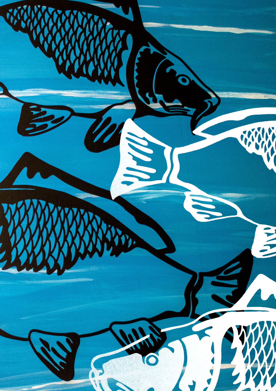 In der Erzählung stark verankert sind der Neuanfang und die Hoffnung auf eine bessere Welt. Das Wasser, das von der alten in die neue Welt führt, eine Grenzüberschreitung, aktueller denn je in unserer Welt. Die Gestaltung meiner Röhre klagt nicht an, sondern ist leise. In dieser Ruhe liegt eine Tiefgründigkeit, die sich dem Betrachter erst durch genaues Hinschauen und Nachdenken erschließt. Dargestellt wird sie in der Harmonie zwischen Farbe und Wort.