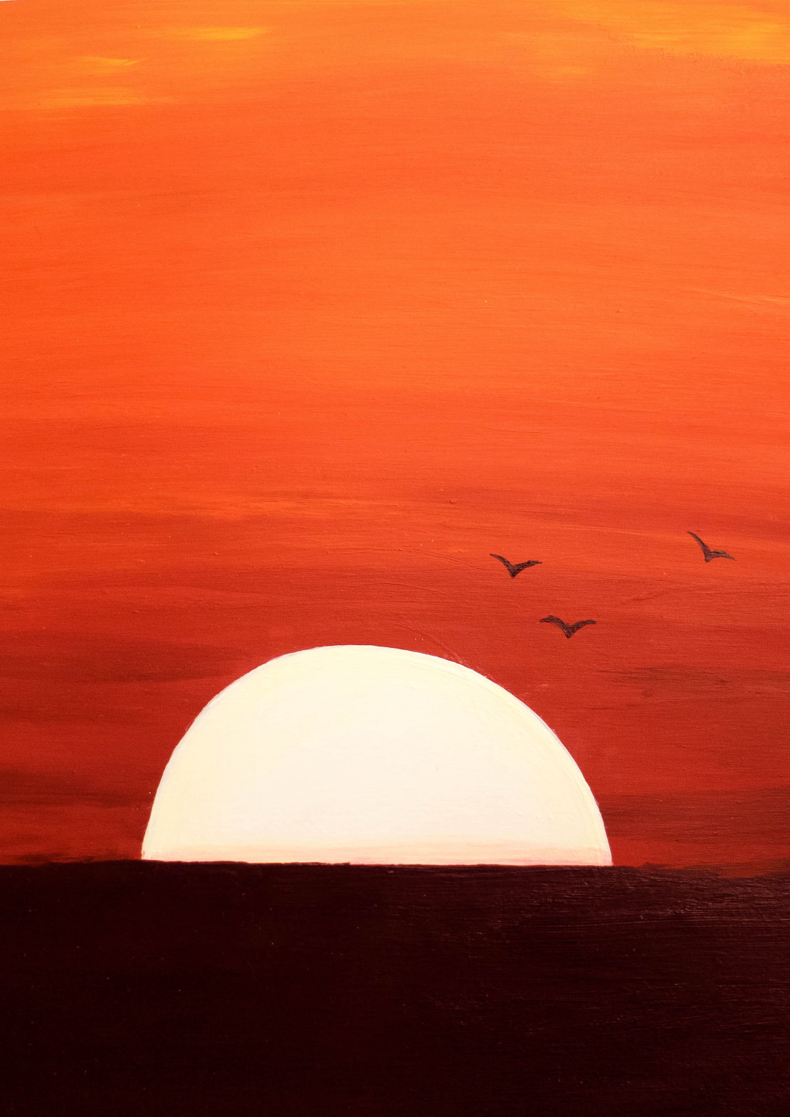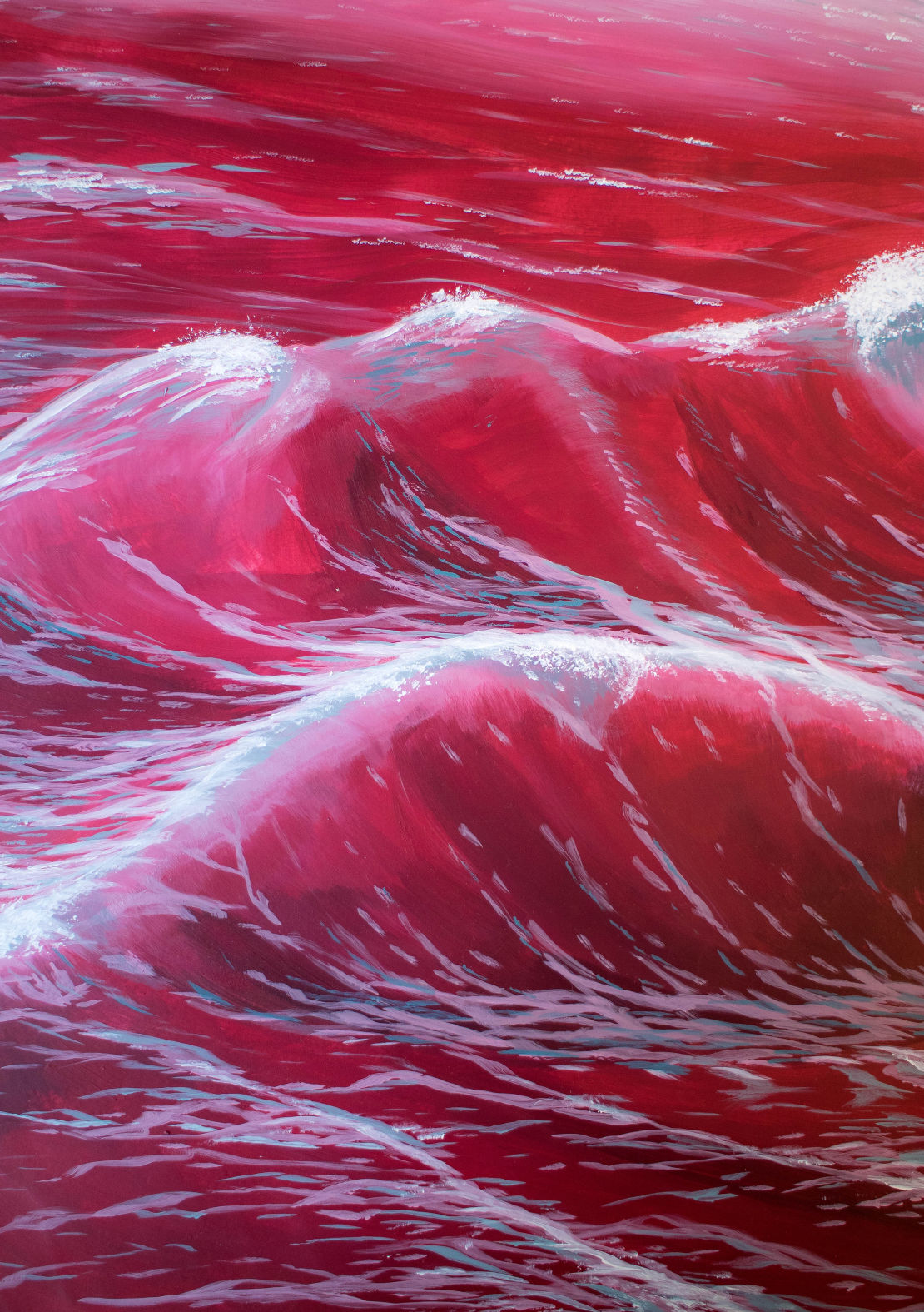 Das dunkelrote Meer steht für mich für das Ertrinken und Sterben der flüchtenden Menschen im Mittelmeer.